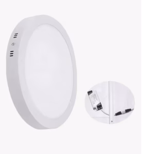 Una de las principales ventajas de este plafón es su diseño **sobrepuesto**, lo que significa que se instala directamente sobre la superficie del techo, sin necesidad de realizar perforaciones profundas, empotramientos o modificaciones estructurales complejas. Esta característica lo convierte en la opción ideal tanto para construcciones nuevas como para renovaciones o reemplazos de luminarias antiguas, donde se busca minimizar el tiempo de instalación y los costos asociados a obras civiles. Su base robusta y su difusor de policarbonato de alta resistencia permiten una fijación segura y estable, garantizando años de funcionamiento sin desgastes prematuros.